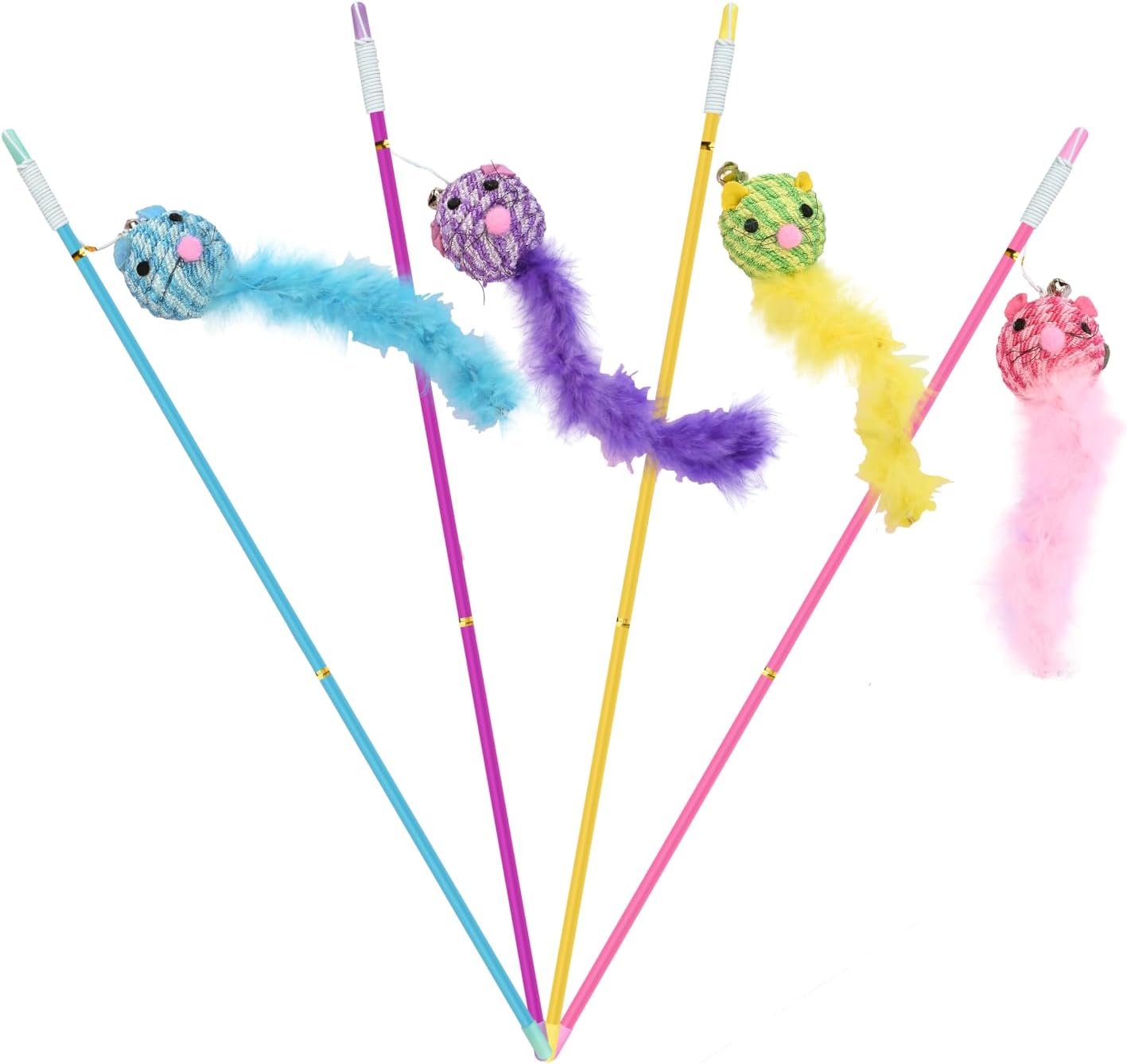 - Flexible: Die Katzenangel ist flexibel und langlebig und ist in vier verschiedenen Farben erhältlich. Sie lässt sich leicht verstauen.